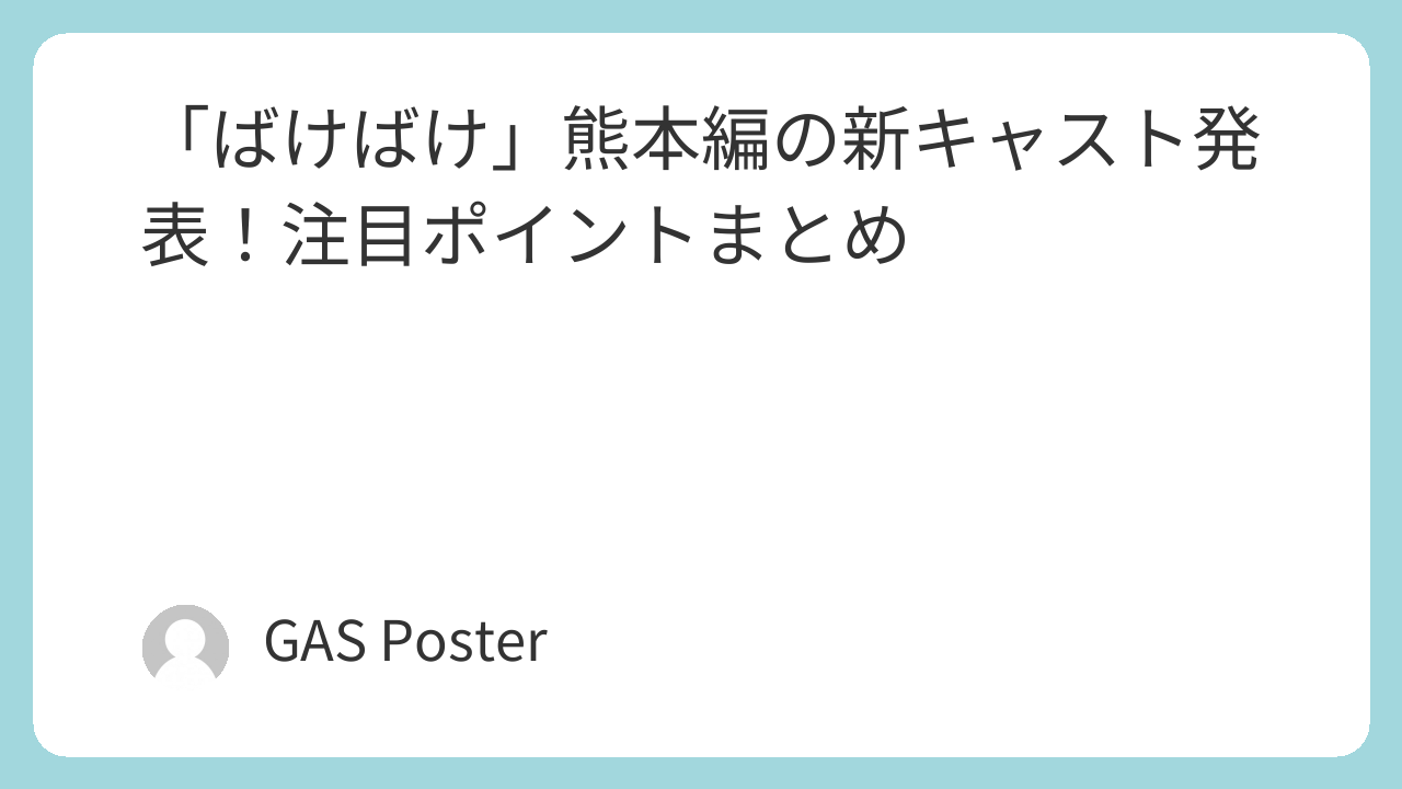 地方編の展開が注目されているドラマ『ばけばけ』の熊本編に、新キャストが加わることが発表され話題になっています。これまでのエピソードとは違った土地・人との出会いが描かれる熊本編だけに、どんなキャストが参加するのか注目していた視聴者も多いようです。この記事では、新キャスト情報と見どころを整理して紹介します。