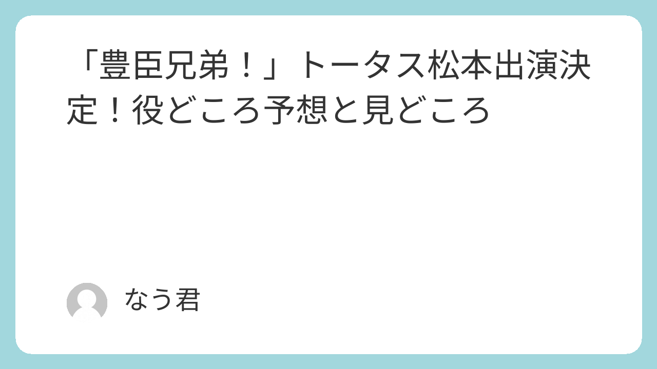 ドラマ「豊臣兄弟!」にトータス松本さんが出演するというニュースは、作品への期待感をさらに高めるものとなりました。音楽とは違ったフィールドで見せる表現が、歴史ドラマの世界観にどう溶け込むのか。今後の続報や放送を楽しみに待ちたいですね。