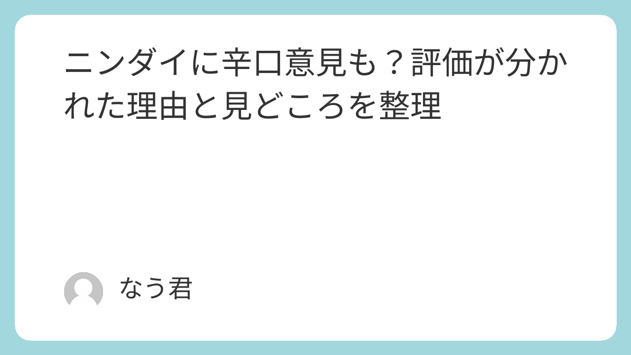 評価が割れたニンダイをどう楽しむべきか