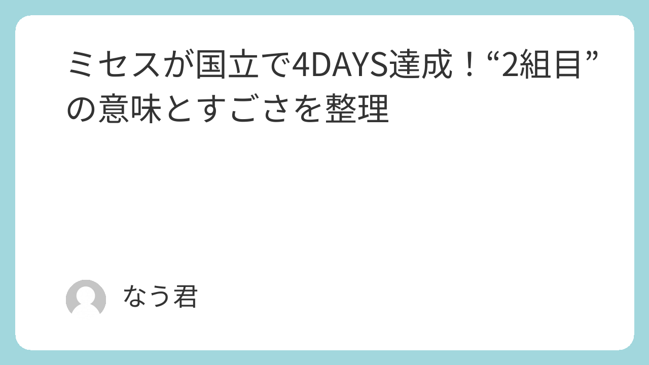 ミセスの国立4DAYS達成は、単なる記録更新ではなく、長年の活動と支持の積み重ねが形になった出来事でした。「嵐以来2組目」という言葉が象徴するように、その到達点は非常に高く、多くのファンにとって誇らしい瞬間となったはずです。これからミセスがどんな景色を見せてくれるのか、引き続き注目していきたいですね。
