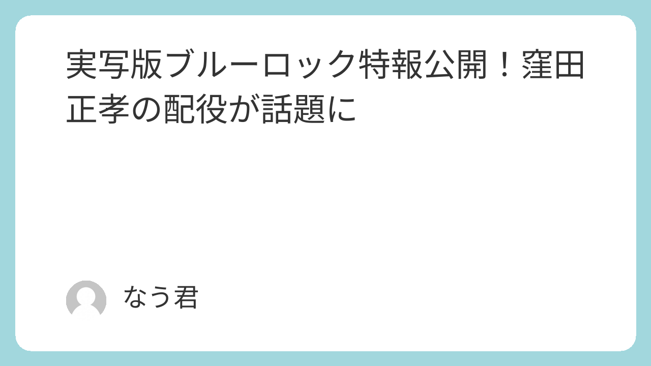 窪田正孝さんの絵心甚八役は、原作のイメージを尊重しつつ、実写ならではの説得力を加えられそうな配役です。今後の情報次第で評価は変わるものの、少なくとも「冷静に見守りたい」と思わせる特報だったと言えるでしょう。