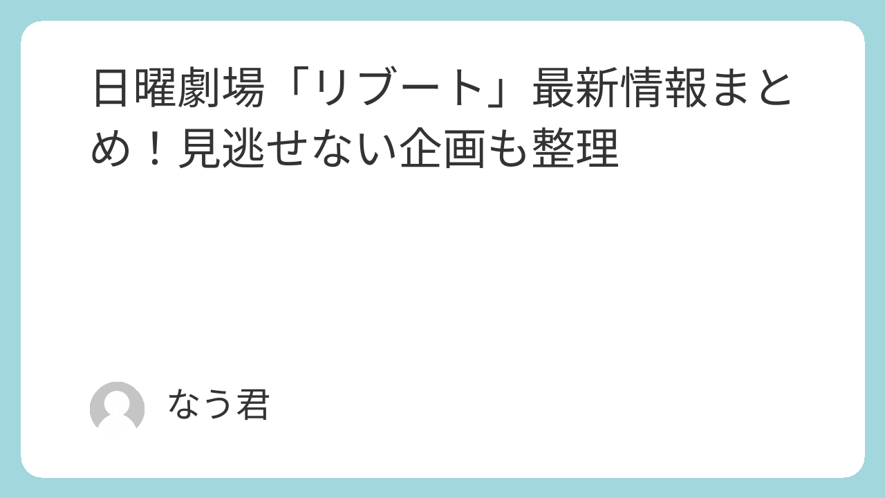 TBSの日曜劇場枠で放送される新作ドラマ『リブート』に関する最新情報や関連企画が続々と公開され、注目が集まっています。キャストコメントや公式動画など、放送前から楽しめるコンテンツも増えており、「何からチェックすればいい?」と感じている人も多いはず。この記事では、考察を煽りすぎず、公式情報の範囲で見どころや予習ポイントを整理します。