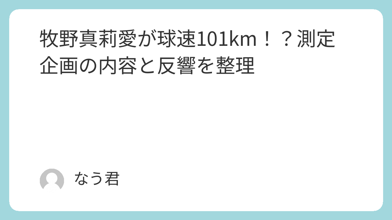 牧野真莉愛さん(モーニング娘。)が参加した球速測定企画で「101km」という数値が出たことが話題になっています。