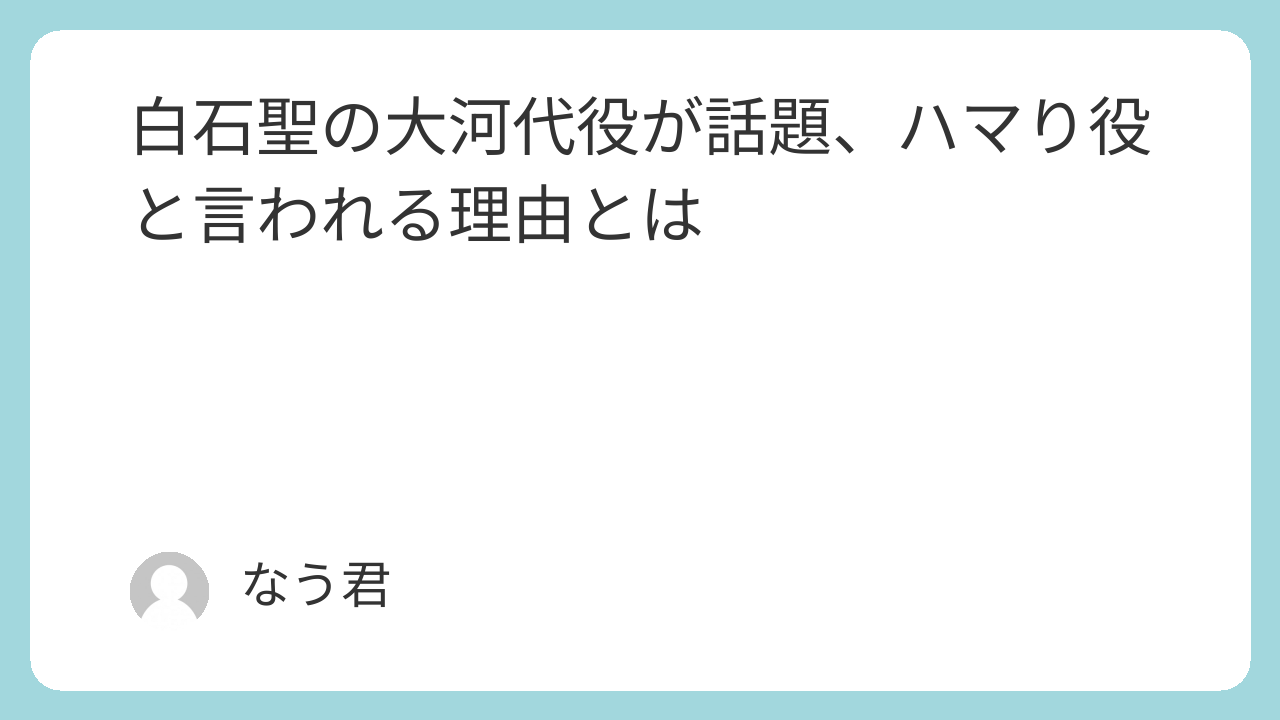 白石聖の大河代役が話題、ハマり役と言われる理由とは