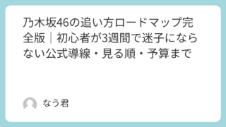 アイドルニュース 乃木坂46の追い方ロードマップ完全版|初心者が3週間で迷子にならない公式導線・見る順・予算まで 乃木坂46の追い方を初心者向けに3週間ロードマップ化。公式サイト・乃木坂配信中・のぎ動画の導線、本人確認ルール、見る順と予算設計まで1本で整理。 2026.02.15 アイドルニュース乃木坂46乃木坂配信中推し活ガイド