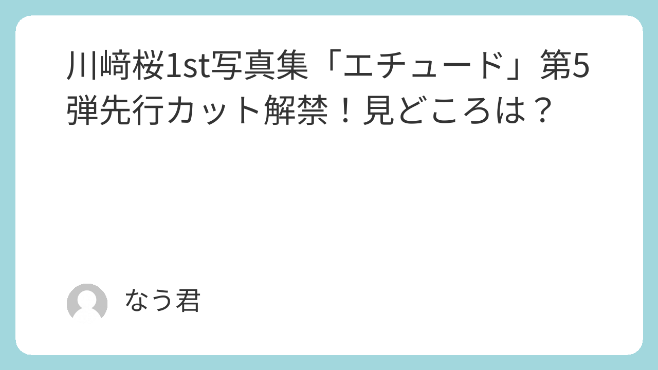 川﨑桜さんの1st写真集「エチュード」第5弾先行カットが公開され、発売に向けた期待がさらに高まっています。段階的に明らかになる世界観を楽しみつつ、今後の追加情報にも注目していきましょう。