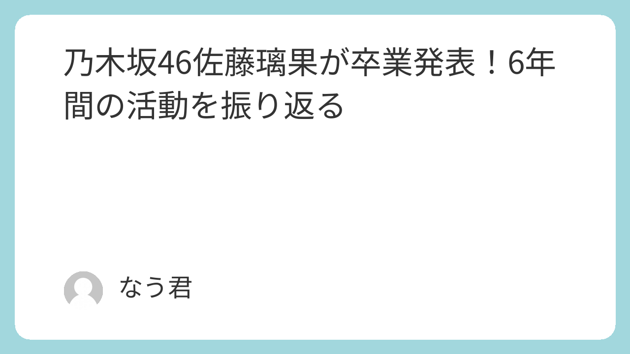 グループにとっても一つの節目となる今回の卒業。佐藤璃果さんが残してきた足跡は、これからも乃木坂46の歴史の中に刻まれていくはずです。