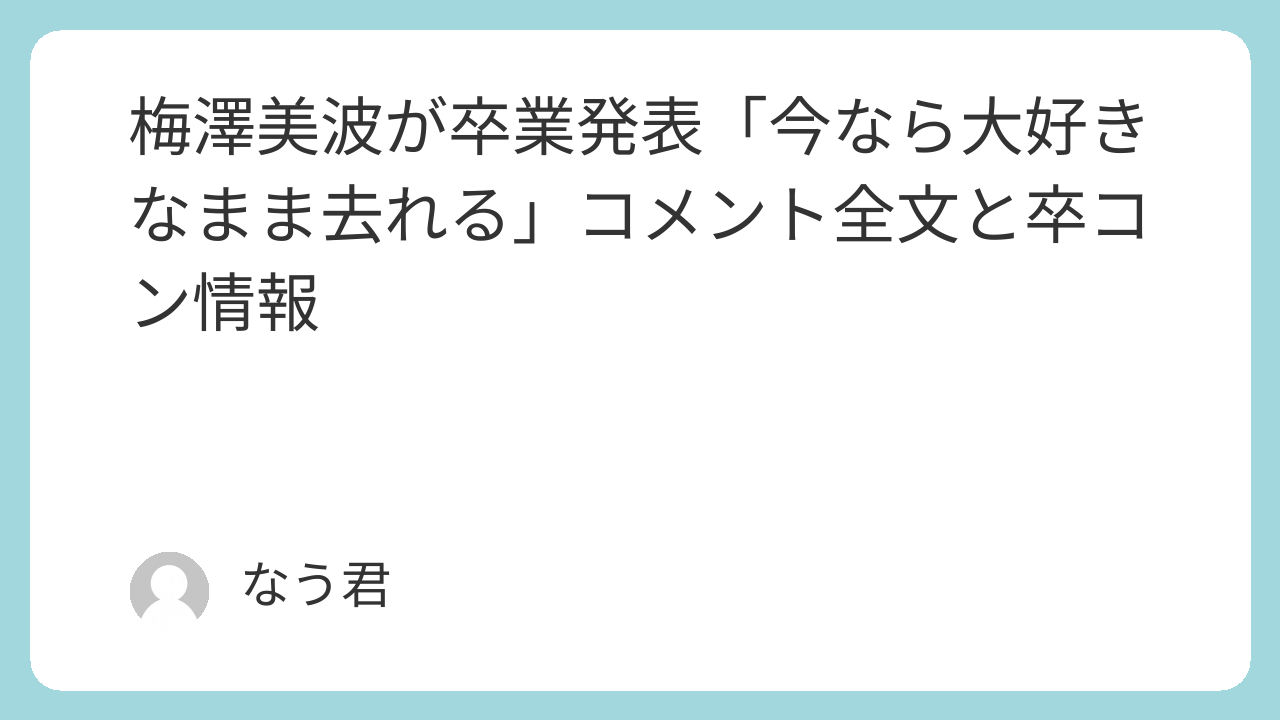 Xの反応は発表直後から「うあああ…梅ちゃん卒業」「感謝しかない」「卒コンまで全力で推す」という寂しさと前向きさが混ざり、ハッシュタグ #梅澤美波 #乃木坂46 が活発。梅澤の「大好きな乃木坂を、今なら大好きなまま、去ることができそうです」という言葉が、ファンに「幸せな別れ」を感じさせています。5月21日の東京ドームが、最高のフィナーレになることを願うばかりですね…