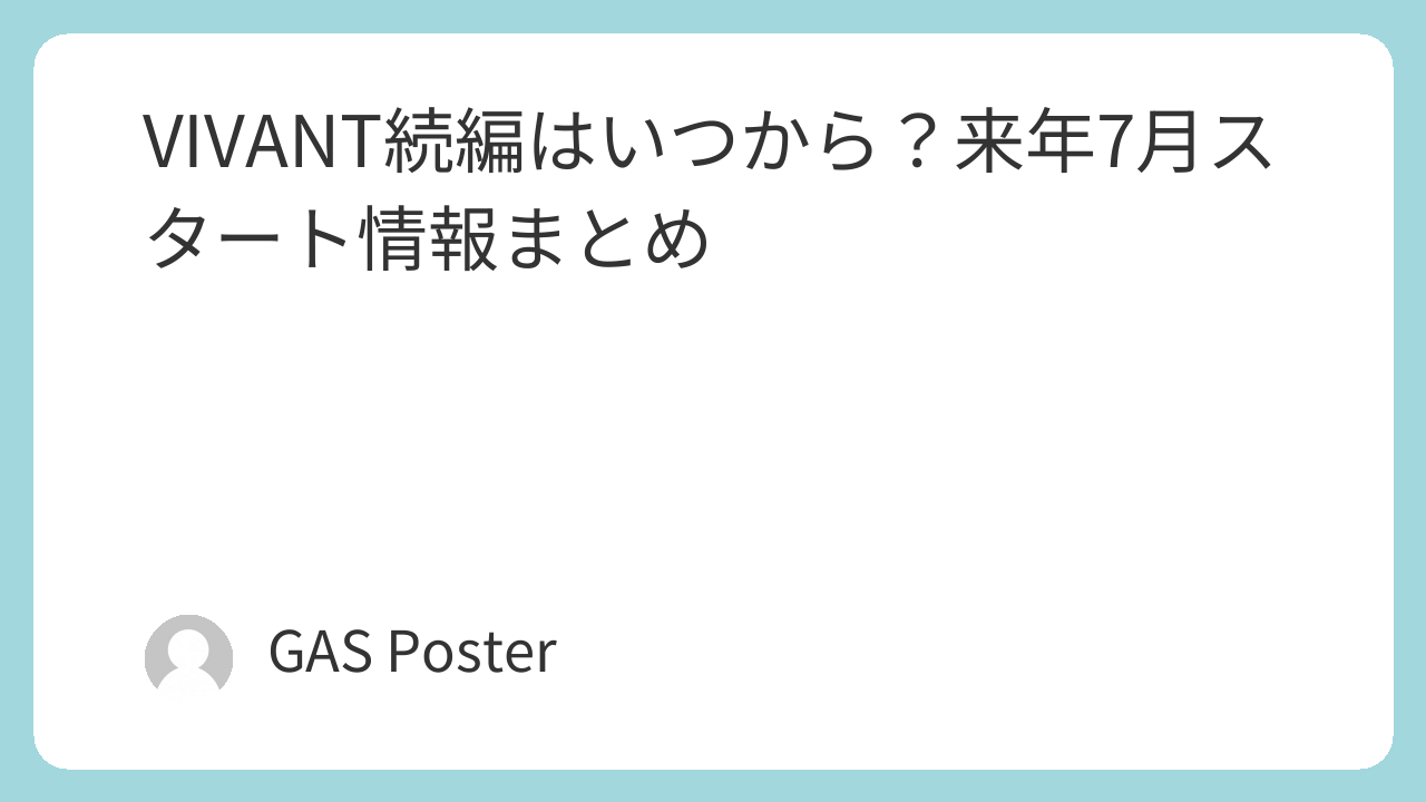 この記事では、『VIVANT』続編の放送時期や2クール編成について、公式発表をもとに整理します。